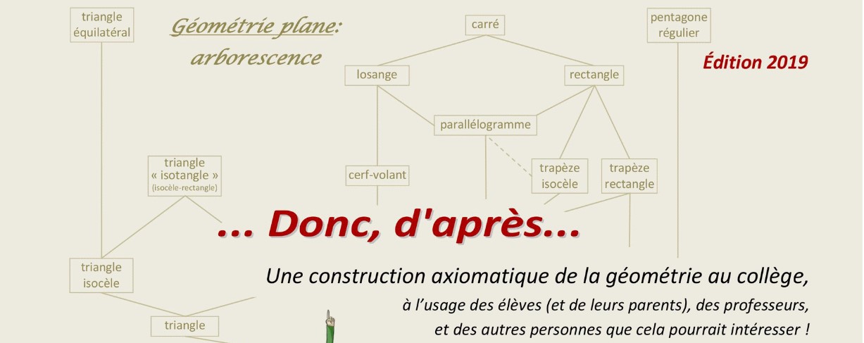 " So, according to..." (an axiomatic construction of geometry in middle school) has become a reference: a book written out of passion, but also to share that passion, to open up geometry to all those who have been convinced that "math isn't for you!"